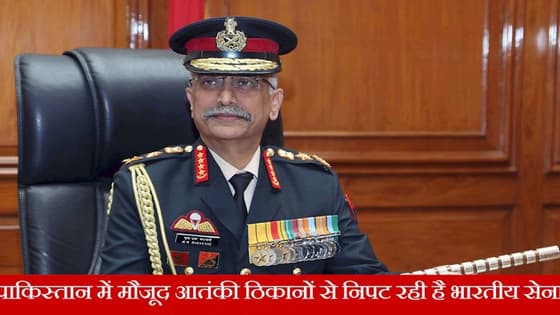 नमस्कार स्वागत है आपका माय नेशन में, मेरा नाम है अमल चौधरी और आज हम बात करेंगे सेना प्रमुख जनरल एमएम नरवणे के उस बयान के बार में जिसमें उन्होंने पाकिस्तान में मौजूद आतंकी ठिकानों पर दबाव बनाने की बात कही है. सेना प्रमुख जनरल एमएम नरवणे ने गुरुवार को कहा कि सेना लगातार आतंकी समूहों पर दबाव बना रही है। एलओसी पर पाकिस्तान की बॉर्डर एक्शन टीम (बैट) टीम की सक्रियता के सवाल पर उन्होंने कहा- हमारे जवानों ने बैट की कार्रवाई से पहले ही उन्हें नाकाम किया है। उन्होंने दावा किया कि जम्मू-कश्मीर में आतंकी घटनाओं में कमी आई हैं।