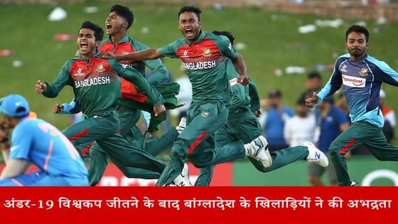नमस्कार स्वागत है आपका माय नेशन में, मेरा नाम है अमल चौधरी और आज हम बात करेंगे भारत और बांग्लादेश के बीच खेले गए अंडर 19 विश्व कप फाइनल की जिसमें भारत को हराने के बाद बांग्लादेश के खिलाड़ियों ने किस तरह से अंडर 19 क्रिकेट वर्ल्ड कप में बांग्लादेश की टीम ने भारत को हराकर ट्रॉफी जीत ली। हालांकि जीत के जोश में बांग्लादेशी खिलाड़ी अपना आपा खो बैठे और भारतीय टीम से भिड़ गए। फील्डिंग के दौरान कई बार आक्रामकता दिखा चुके बांग्लादेशी खिलाड़ियों ने मैच जीतने के बाद और ज्यादा आक्रामकता का प्रदर्शन किया। उन्होंने भारतीय खिलाड़ियों के सामने जाकर उनसे अपशब्द कहे, जिससे दोनों टीम के खिलाड़ियों में धक्का-मुक्की तक की नौबत आ गई। हालांकि, बांग्लादेशी टीम के कप्तान ने इसके लिए माफी मांगी है।