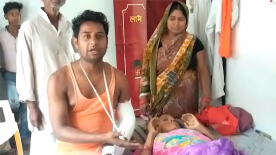 बलिया में दबंगों के सामने पुलिस की बिल्कुल नहीं चलती। यहां गुंडों ने घर में घुसकर पूरे परिवार को लाठी डंडे व राड से जमकर पीटा। यहां तक कि बुजुर्ग महिला को भी नहीं बख्शा गया। उनके सीने पर चढ़कर हमला किया गया और एक युवक को मार कर उसके हाथ को तोड़ दिया गया। घर के दरवाजे और दीवारों को राड से तोड़ा गया।