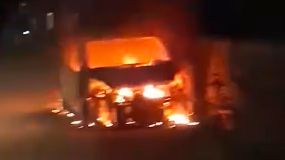 गाड़ी में लगी आग, कैमरे में केद हुआ खतरनाक दृश्य