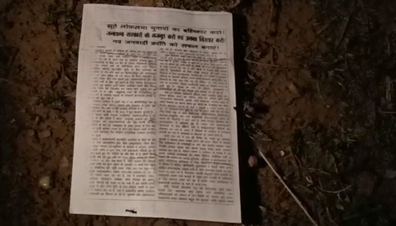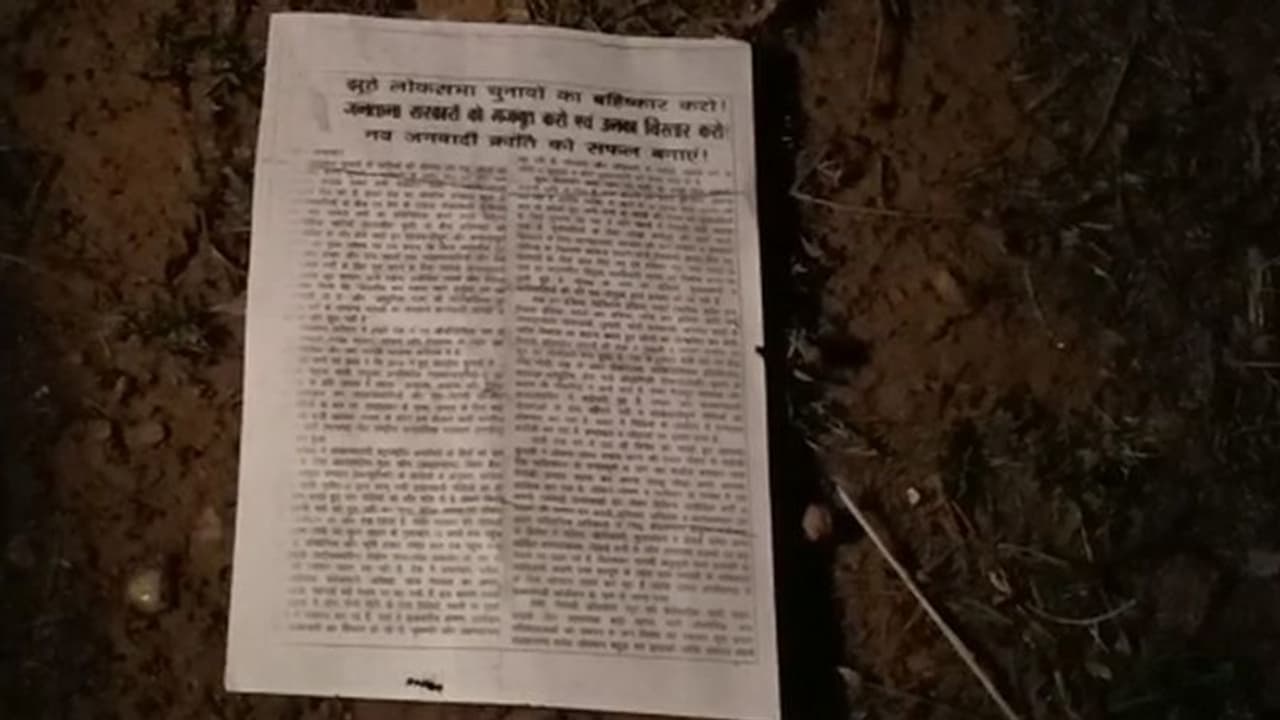 छत्तीसगढ़ के कांकेर लोकसभा क्षेत्र के पखांजुर में नक्सलियों ने एक बार फिर से चुनाव बहिष्कार का फरमान जारी किया है। उन्होंने थाने से तीन किलोमीटर दूर चुनाव विरोधी पर्चे फेंककर अपनी उपस्थिति दर्ज कराई।