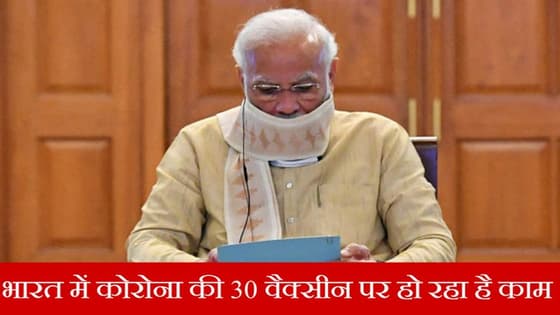 प्रधानमंत्री नरेंद्र मोदी ने देश में कोरोनावायरस का वैक्सीन बनाने की कोशिशों की समीक्षा की। कोरोना वैक्सीन डेवलपमेंट, ड्रग डिस्कवरी, डायग्नोसिस एंड टेस्टिंग पर बनी टास्कफोर्स की बैठक मंगलवार शाम को हुई। बैठक के बाद ये बताया गया कि देश में कोरोना की 30 वैक्सीन के डेवलपमेंट का काम अलग-अलग स्टेज पर है। इनमें से कुछ का ट्रायल भी शुरू होने वाला है।