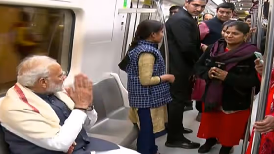 पीएम नरेंद्र मोदी ने मंगलवार को दिल्ली के इस्कॉन मंदिर में दुनिया का सबसे बड़ी भगवद्गीता का अनावरण किया। इस दौरान पीएम ने इस्कॉन मंदिर पहुंचने के लिए खान मार्केट से मेट्रो का सफर किया। इस दौरान पीएम ने न सिर्फ मेट्रो में यात्रा कर रहे लोगों से हाथ मिलाया, बल्कि वहां मौजूद छोटे बच्चों के साथ भी बात की। इस दौरान मेट्रो में सफर कर रहे लोगों में पीएम मोदी के साथ सेल्फी लेने और उनसे हाथ मिलाने की भी होड़ मची रही।