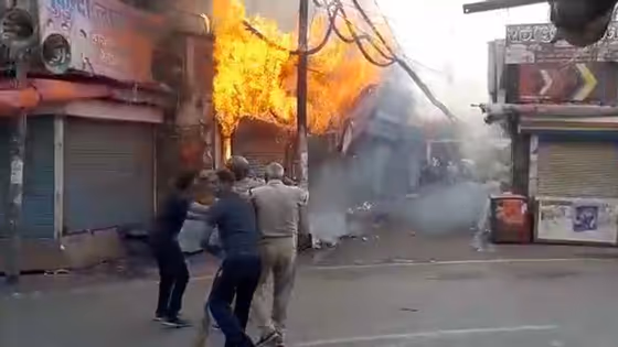 प्रयागराज के चौक इलाके के कपड़ा मार्केट में भीषण आग
