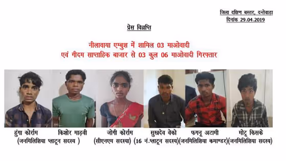 छत्तीसगढ़ के दंतेवाड़ा से छह नक्सली गिरफ्तार