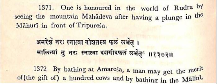 नीलमत पुराण में अमरेश तीर्थ का जिक्र किया गया है – अमरेश में स्नान करन, एक व्यक्ति के हजार गाय के दान देने के समान है।