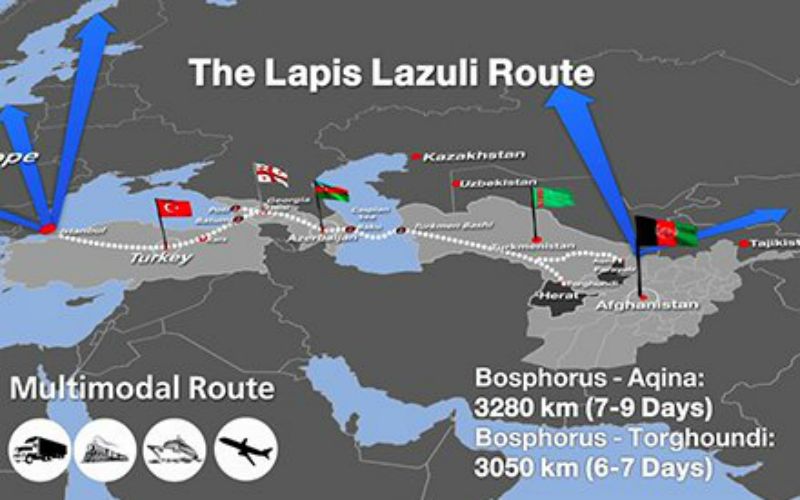 यह लापीस लाजुली ट्रेड कॉरिडोर रेल और समुद्री मार्गों के ज़रिए पांच देशों के लिए यूरोप का रास्ता खोलता है। यह कैस्पियन सागर और काला सागर से भी जुड़ा हुआ है।