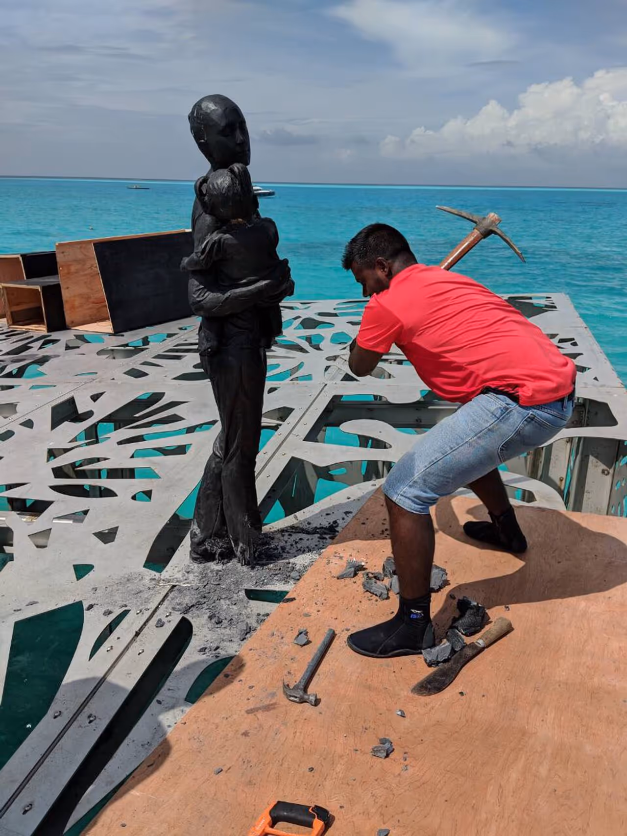 निवर्तमान राष्ट्रपति अब्दुल्ला यामीन ने जुलाई में ही इन मूर्तियों को नष्ट करने का आदेश दिया था लेकिन उसका पालन शुक्रवार को किया गया। जेसन डि‘कैरस टेलर द्वारा बनाई गई मूर्तियों को मालदीव के एक रिसॉर्ट में आधे डूबे हुए धातु के कंटेनर में रखा गया था।