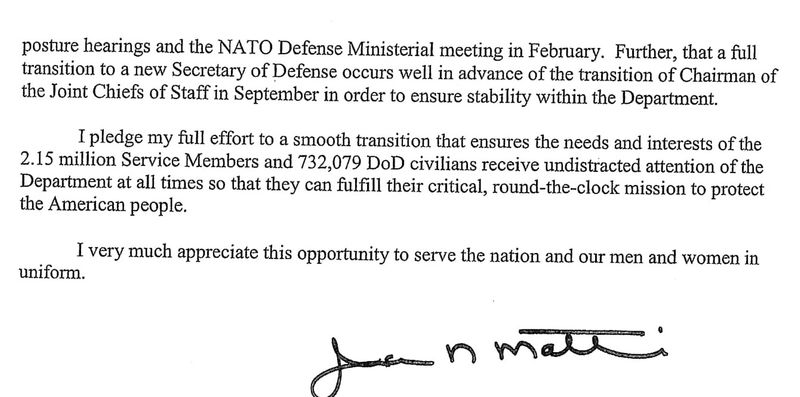भारत-अमेरिका रक्षा संबंधों के बड़े समर्थक मैटिस फरवरी तक रहेंगे पद पर। राष्ट्रपति डोनाल्ड ट्रंप ने कहा कि नए रक्षा मंत्री का ऐलान जल्द ही होगा।