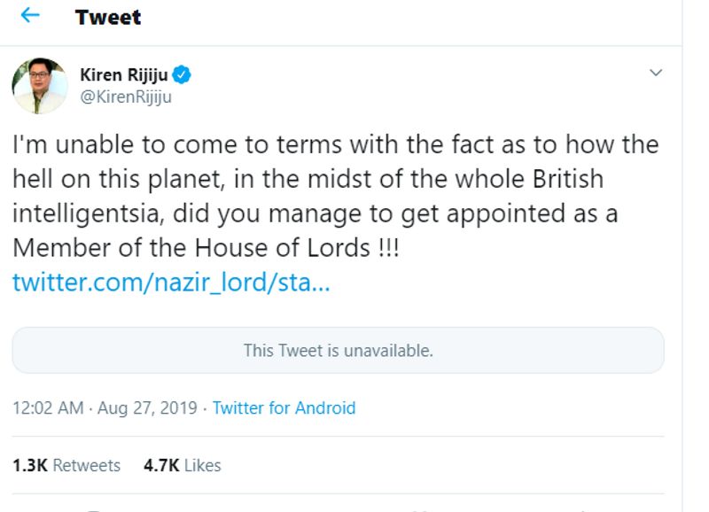 नई दिल्ली: पाकिस्तान में पैदा हुए ब्रिटेन के मुस्लिम सांसद नजीर अहमद ने बेहद आपत्तिजनक टिप्पणी की है। उसने पिछले कुछ दिनों में मारे गए बीजेपी के दिवंगत नेताओं का जिक्र करते हुए विवादास्पद ट्विट किया।